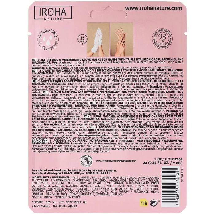 Experimenta el lujo de un tratamiento de spa en casa con esta fantástica mascarilla de manos. Entonces, ¿por qué esperar? ¡Ordena tu Mascarilla de Manos Iroha Anti-edad Ácido Hialurónico (9 ml) hoy y descubre el poder del ácido hialurónico por ti mismo!