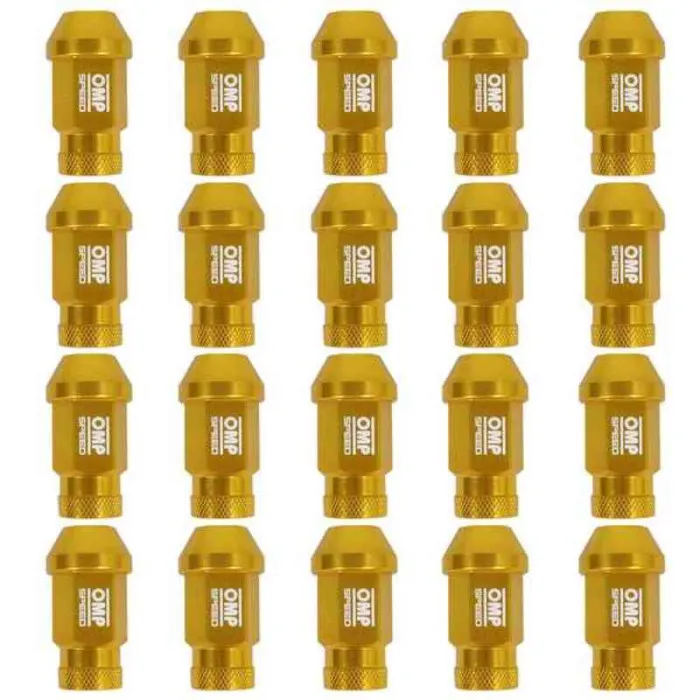 Las Tuercas OMP Set vienen en un paquete de 20, lo que hace que sea conveniente para ti actualizar los accesorios de tu auto. Estas tuercas de color dorado son perfectas para añadir un toque de clase a tu vehículo. Las tuercas tienen una longitud de 40 mm y el tamaño del tornillo es M14 x 1,50. Estas especificaciones hacen que estas tuercas sean un ajuste perfecto para las ruedas de tu auto.