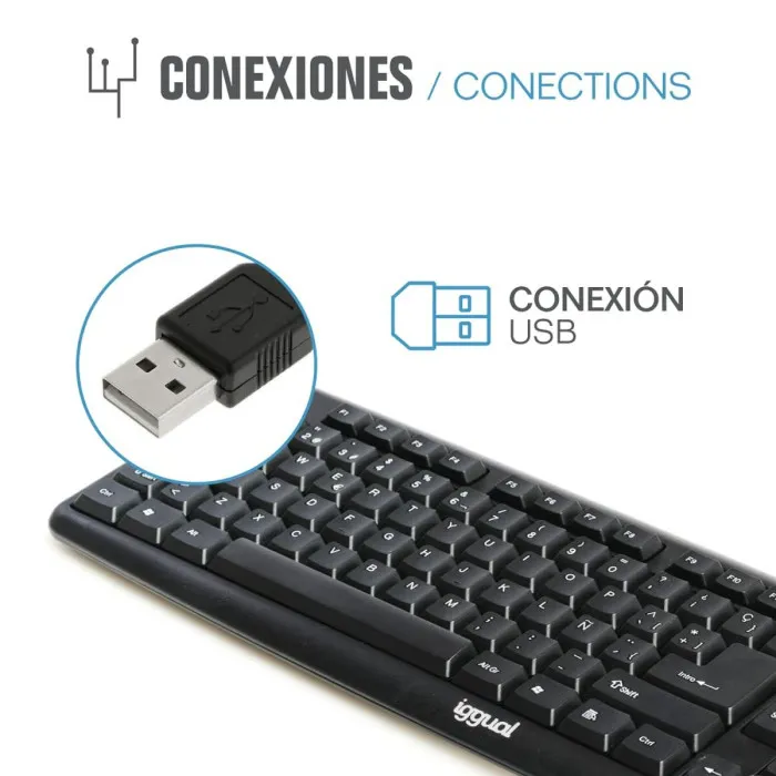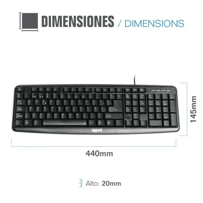 Mejora tu experiencia informática con el teclado iggual CK-BASIC-105T QWERTY USB Negro Español Mono. Este teclado estándar cuenta con una conexión USB con un cable para una escritura más rápida y confiable. Su teclado numérico proporciona una fácil entrada de números, lo que lo hace ideal para el trabajo de oficina y tareas técnicas.