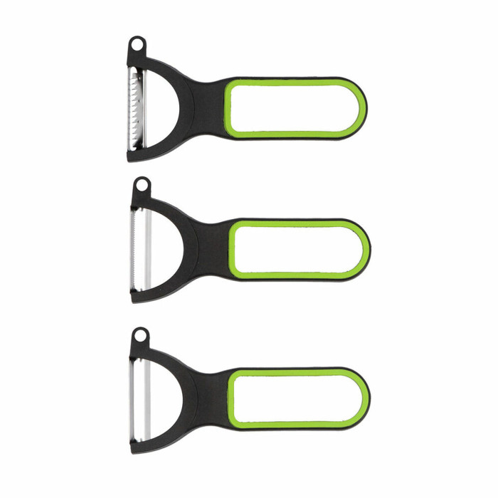 Fabricado con metal de alta calidad, este pelador no solo es duradero, sino también apto para lavavajillas, lo que facilita su limpieza después de usarlo. Su elegante color verde complementará cualquier decoración de cocina, y viene en un paquete de tres, por lo que siempre tendrás un pelador de repuesto a mano.