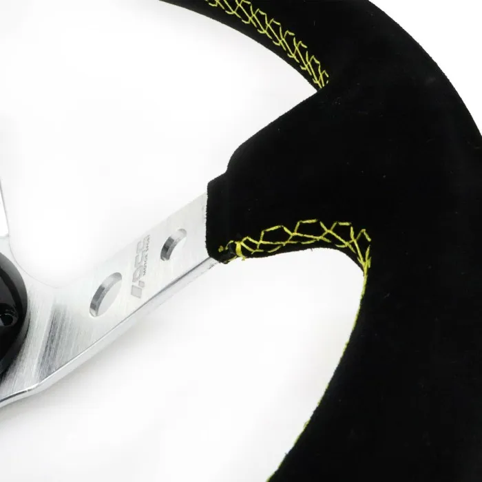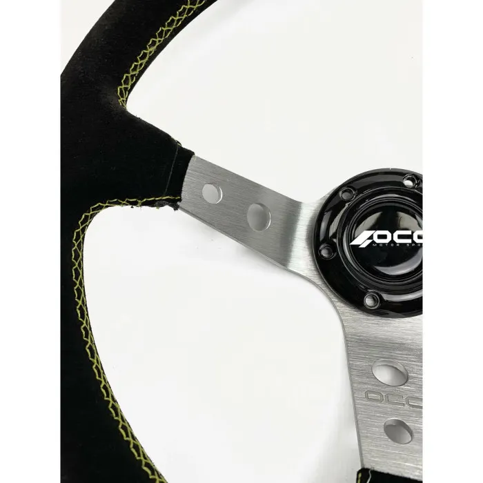 El volante de carreras OCC Motorsport OCCVOL001 Negro Ø 35 cm de ante es el complemento perfecto para cualquier vehículo de alto rendimiento. Fabricado con material de ante de la más alta calidad, este volante proporciona un agarre y control máximos para cualquier maniobra de conducción. Su diámetro de Ø 35 cm permite una mayor precisión y facilidad de manejo, y las opciones de color negro y plateado garantizan que coincida con el interior de cualquier vehículo.