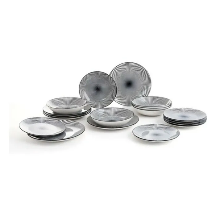 La vajilla Quid Miami Cerámica Negra Gris de gres (18 piezas) es el juego perfecto para añadir un toque de elegancia a tu experiencia gastronómica. Hecho de gres de alta calidad, el juego está diseñado para impresionar a tus invitados. La combinación de colores negro y gris le da al juego una apariencia sofisticada, haciéndolo perfecto para ocasiones tanto formales como informales.