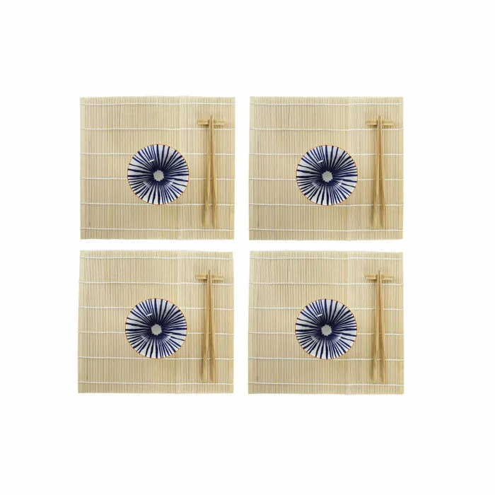 Si buscas la forma perfecta de preparar y servir sushi en casa, no busques más allá del Sushi Set DKD Home Decor. Con su hermoso diseño en azul y blanco y su estilo inspirado en Oriente, este set es el accesorio ideal para cualquier amante del sushi. El set incluye cuatro soportes, cuatro cuencos, cuatro palillos y cuatro manteles, por lo que tienes todo lo que necesitas para disfrutar de tu sushi con estilo.