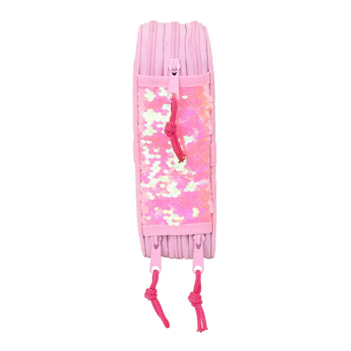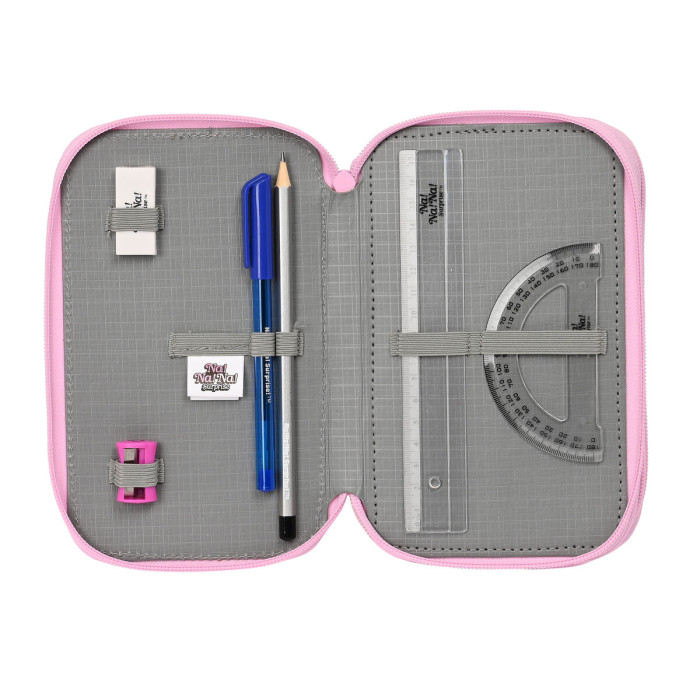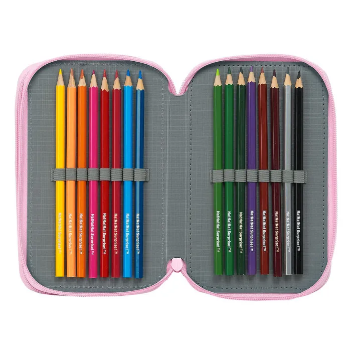 No solo es altamente funcional, el Estuche de Lápices Triple Na!Na!Na! Surprise Sparkles Rosa Claro (36 Piezas) también es elegante y llamativo. El color rosa claro y el diseño brillante de lentejuelas seguramente harán que tu hijo se destaque entre la multitud. Y con un cierre de cremallera, puedes estar seguro de que todos los útiles escolares de tu hijo estarán seguros y protegidos.