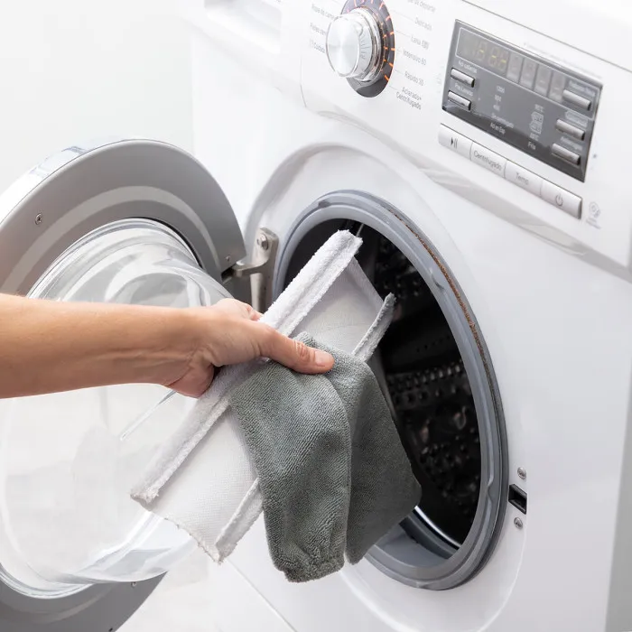 Con un diseño moderno en gris y amarillo, el set está hecho de materiales ABS, PP, microfibra y acero inoxidable. Es ligero y manejable, lo que facilita su uso y transporte mientras se limpia. Este set también viene con 2 paños de microfibra lavables en la máquina, dándole la opción de limpiarlos después de su uso para un uso repetido.