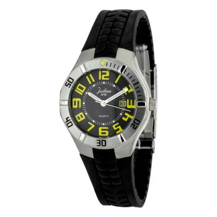 El reloj de dama Justina JPC35 es el accesorio perfecto para personas a la moda que buscan una pieza de tiempo elegante y funcional. Este reloj tiene una caja de 33 mm de diámetro hecha de acero de alta calidad y acero inoxidable, lo que garantiza su durabilidad y longevidad. El material de la pulsera de goma natural ofrece un ajuste cómodo, lo que lo hace ideal para el uso diario.