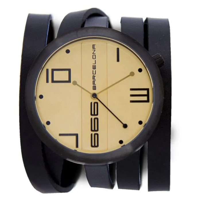 Si estás buscando un reloj elegante que haga una declaración, el Reloj Unisex 666 Barcelona 666-175 (Ø 45 mm) es tu elección perfecta. Su pulsera de cuero negro y su caja de reloj negra se complementan con una hermosa esfera de reloj dorada, lo que hace que este reloj realmente se destaque.