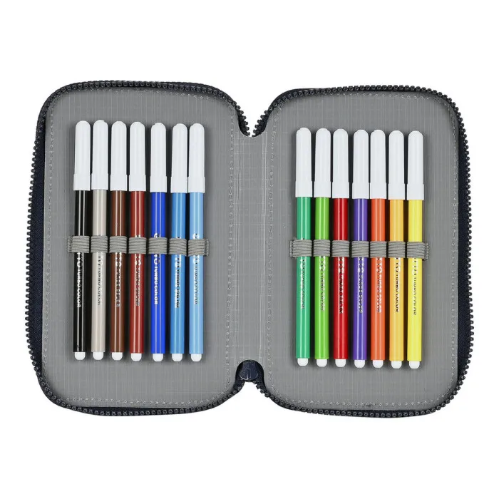 El estuche doble para lápices F.C. Barcelona Corporativa Azul Granate es el accesorio perfecto para cualquier joven aficionado del legendario equipo de fútbol español. Hecho de material de poliéster de alta calidad, este estuche puede soportar el uso diario y mantener todos los suministros de arte seguros y organizados. Los colores azul y granate, combinados con el logo del F.C. Barcelona, hacen de este estuche un complemento elegante y funcional para cualquier mochila escolar.