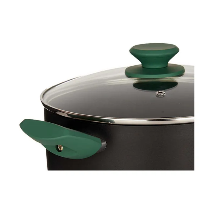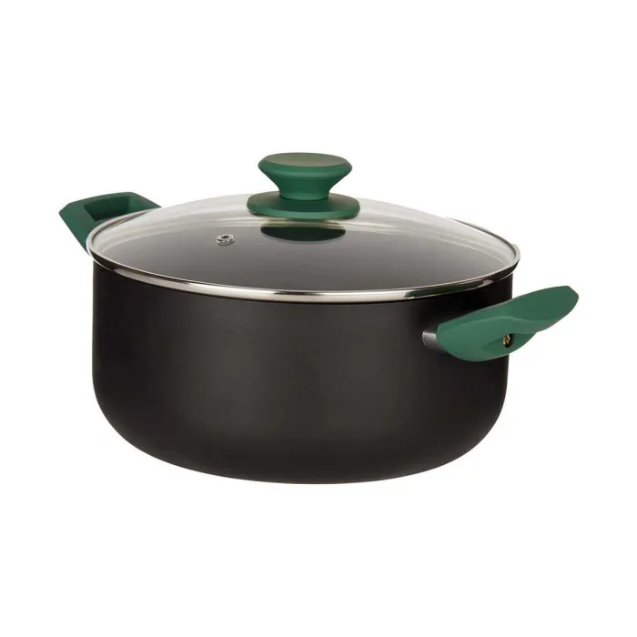 Les presentamos la cacerola negra y verde de aluminio Ø 24 cm (4,5 L), la adición perfecta al arsenal de cualquier cocinero en casa. Fabricada con aluminio de la más alta calidad, esta cacerola está construida para durar y manejar cualquier tarea culinaria con facilidad. Su impresionante capacidad de 4,5 L garantiza un amplio espacio para crear deliciosas comidas para toda la familia.