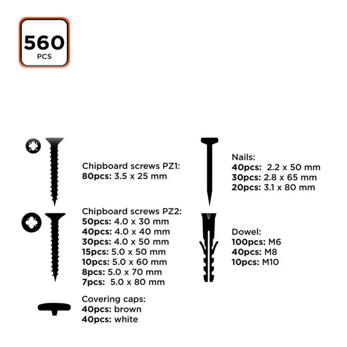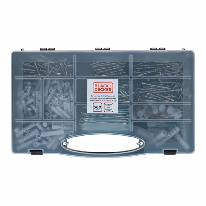 Set de tornillos, tacos y clavos Black & Decker 560 Piezas