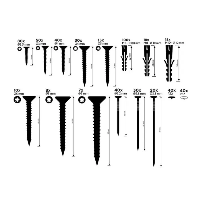 Set de tornillos, tacos y clavos