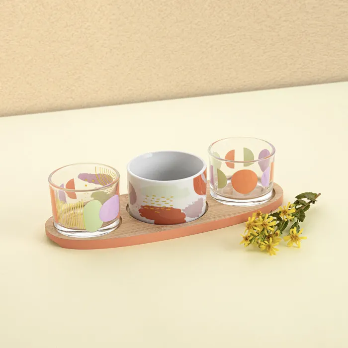 Este juego de servicio premium incluye tres cuencos elegantemente elaborados y una tabla de servicio de tamaño generoso, ofreciéndote amplias opciones para servir tus platos favoritos. Los cuencos son perfectos para ensaladas, guarniciones o bocadillos, mientras que la tabla de servicio es ideal para presentar charcutería, aperitivos o una deliciosa variedad de postres. Cada pieza está diseñada para elevar tu experiencia culinaria, asegurando que tus utensilios de cocina cumplan con los altos estándares que estableces para tu hogar.