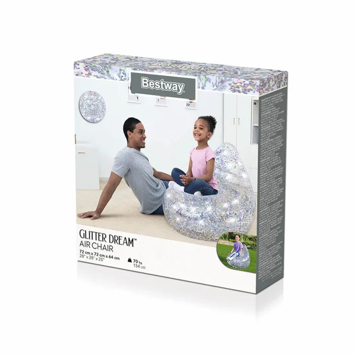 Si estás buscando elevar tu espacio vital con un toque de diversión y sofisticación, el Sillón Inflable Bestway Multicolor 72 x 72 x 64 cm Glitter es la solución perfecta. Diseñado para combinar comodidad y estilo, este sillón inflable único presenta un impresionante diseño brillante que añade un toque de color y emoción a cualquier habitación o entorno exterior. Con unas dimensiones de aproximadamente 72 x 72 x 64 cm, es el tamaño ideal tanto para niños como para adultos, lo que lo convierte en un complemento versátil para tu hogar o jardín. Con una recomendación de edad de 3 años en adelante, este sillón es perfecto para salas de juegos infantiles, reuniones familiares o como una opción de asiento elegante para tu barbacoa en el jardín.