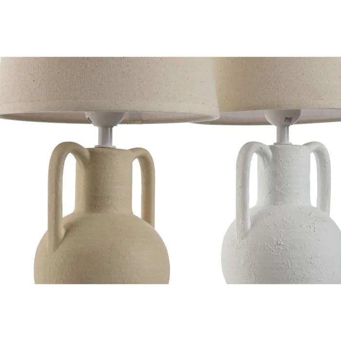 Lámpara de mesa Home ESPRIT Blanco Beige Cerámica 50 W 220 V (2 Unidades)