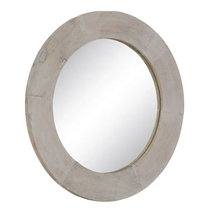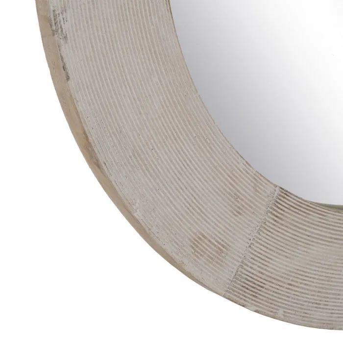 Espejo de pared Blanco Natural Cristal Madera de mango Madera MDF Vertical Redondo 61 x 2,5 x 61 cm
