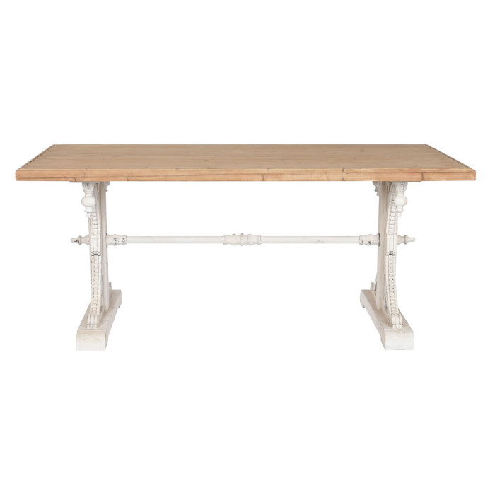 El juego de blanco y tonos naturales en el diseño crea una visual cautivadora que se mezcla sin esfuerzo con varios estilos de decoración, desde contemporáneo hasta rústico. La superficie espaciosa de 180 x 90 cm es perfecta para reuniones familiares y cenas, ofreciendo un amplio espacio para comer y entretener. Con una altura de 76 cm, proporciona acceso cómodo para todos tus invitados, convirtiéndola en el centro ideal para experiencias de comedor memorables.