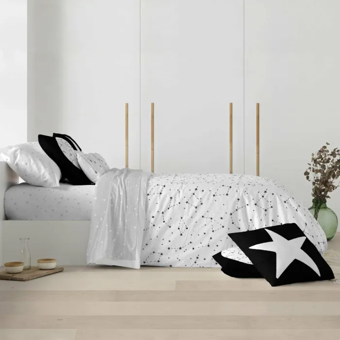 El exclusivo cierre de cuello de botella de la cubierta nórdica garantiza un ajuste ceñido, evitando cualquier deslizamiento o movimiento mientras duermes. Este detalle considerado no solo añade practicidad, sino que también refleja la cuidadosa artesanía por la que Ripshop es conocida. Equilibrando perfectamente estilo y función, la cubierta Ripshop Constelaciones es una elección ideal para aquellos que aprecian una mezcla de arte y utilidad diaria. Eleva la decoración de tu hogar con esta exquisita pieza que sirve tanto como un punto focal impactante como una capa reconfortante para noches de descanso.