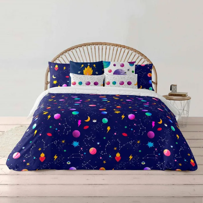 Si estás buscando una adición elegante y práctica para tu hogar, la cubierta nórdica Ripshop Cosmos Multicolor 140 x 200 cm Cuello de Botella es la elección perfecta. Diseñada con atención al detalle, esta funda de cama no solo cumple una función práctica, sino que también realza la estética de tu espacio vital. El vibrante patrón multicolor está inspirado en los principios del diseño nórdico, dándole un aspecto contemporáneo que complementa fácilmente varios estilos de decoración. Puedes utilizarla para cubrir tu cama o sofá, asegurando que tu hogar se sienta acogedor e invitante en todo momento.