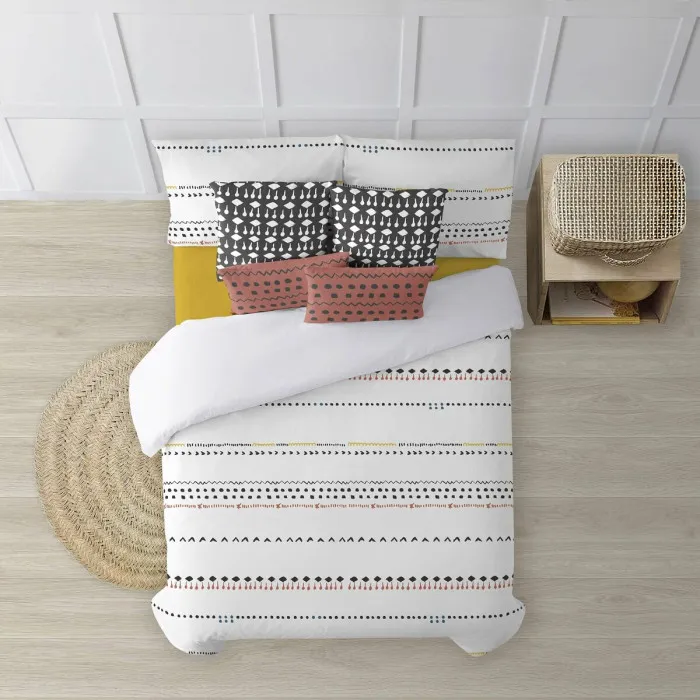 Una de las características destacadas de la funda nórdica es su innovado sistema de cierre cuello de botella. Este diseño no solo asegura un ajuste ceñido, sino que también añade un elemento de elegancia a la apariencia general. La construcción meticulosa, con una densidad de tejido de 175 hilos, habla aún más de la calidad de este producto, convirtiéndolo en una opción fiable para el uso diario. Puedes incorporar esta funda fácilmente a tu decoración existente, ya que su patrón multicolor armoniza bellamente con varios estilos, desde contemporáneo hasta rústico. Disfruta de la conveniencia de un producto que no solo cumple con los estándares estéticos, sino que también proporciona funcionalidad práctica para tu vida cotidiana.