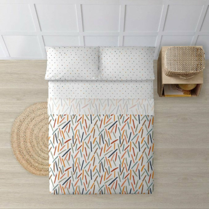El diseño multicolor de este juego de cama combinará con cualquier esquema de color en su dormitorio, y el tamaño de 175 x 270 cm se adaptará a la mayoría de las camas, lo que lo convierte en un juego de cama versátil que es perfecto para cualquier hogar. El conjunto incluye una sábana inferior de 105 x 200 cm y una funda de almohada de 45 x 125 cm.