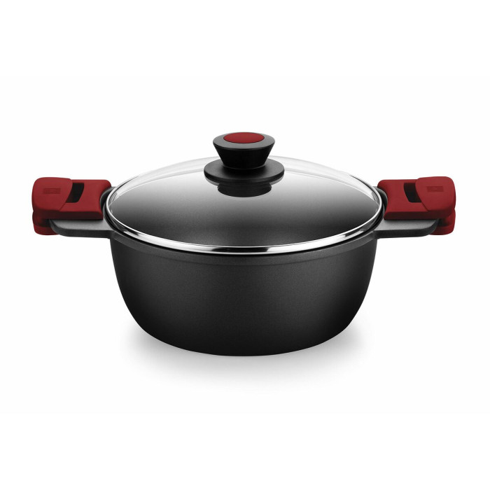 Cacerola con Tapa de Cristal BRA A410328 Negro Rojo