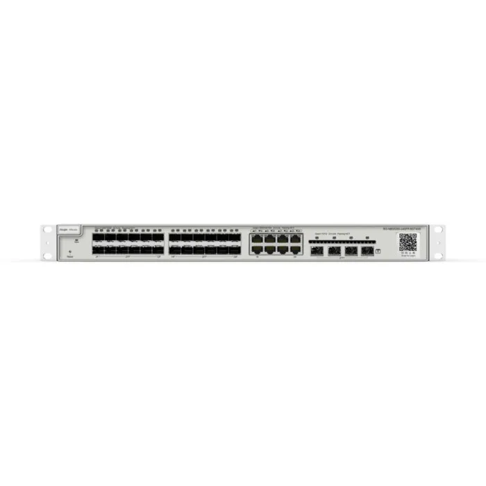 Equipado con 24 puertos RJ45, el Switch Ruijie Networks proporciona amplias oportunidades para conectar varios dispositivos, desde computadoras hasta impresoras, asegurando una comunicación rápida y confiable entre ellos. El switch opera dentro de un rango de voltaje de 100 - 240 V, lo que le permite funcionar en diversos entornos eléctricos. Además, tiene un nivel de ruido bajo de 45 dB, lo que lo hace adecuado tanto para espacios de oficina silenciosos como para entornos bulliciosos. Diseñado para soportar una amplia gama de niveles de humedad (de 10 % a 90 %) y temperaturas (entre -40º / 70º), este switch garantiza confiabilidad y estabilidad, incluso en condiciones variables.
