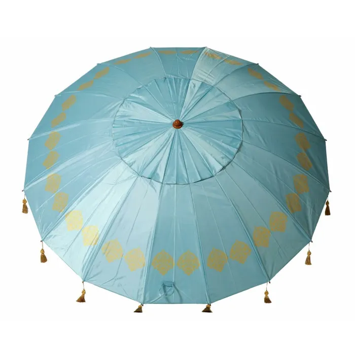La Sombrilla Azul está meticulosamente elaborada con materiales de alta calidad, incluyendo aluminio duradero y tela Oxford resistente. Esta combinación no solo garantiza la longevidad, sino que también la hace ligera y fácil de manejar. Con un peso de solo 3 kg, puedes moverla sin esfuerzo a donde más necesites sombra. Sus dimensiones aproximadas de 200 cm ofrecen una cobertura amplia, permitiéndote relajarte cómodamente debajo de su toldo protector. El encantador diseño con flecos añade un toque delicioso, convirtiéndola en una característica llamativa en cualquier entorno exterior.