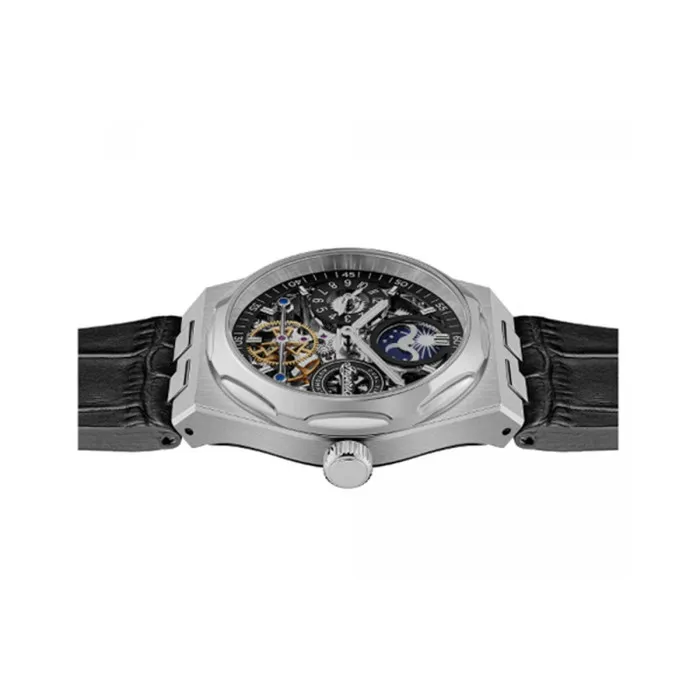 El reloj tiene una cara redonda clásica, que añade un toque atemporal a su apariencia general. La banda de acero inoxidable es resistente y duradera, asegurando que el reloj durará mucho tiempo. La banda ha sido diseñada para ajustarse cómodamente a tu muñeca, lo que lo hace ideal para el uso diario.