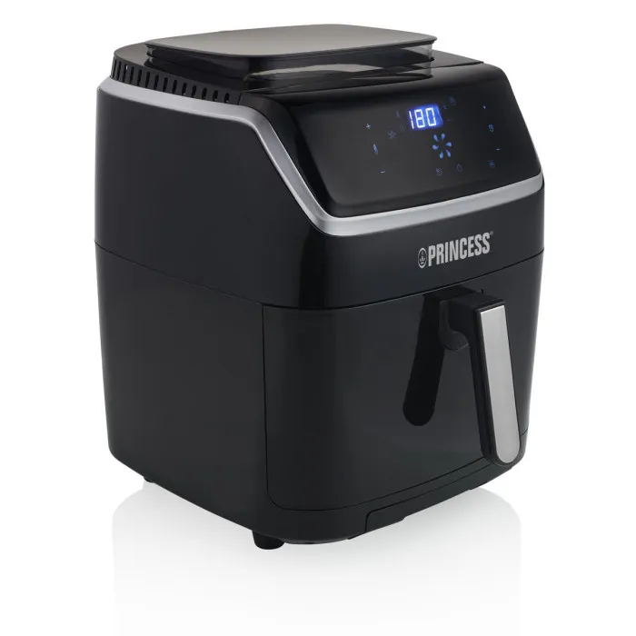 Hecha de material ABS duradero, esta freidora de aire está construida para durar, siendo un electrodoméstico confiable y asequible para tu hogar. Cuenta con un apagado automático y una pantalla incorporada, que facilita la programación del tiempo y la temperatura de cocción. Con control de temperatura ajustable, superficie de cocción antiadherente y un libro de recetas incluido, la Freidora de Aire Princess 182080 Negra es perfecta para cocinar desde papas fritas crujientes hasta alitas de pollo jugosas.