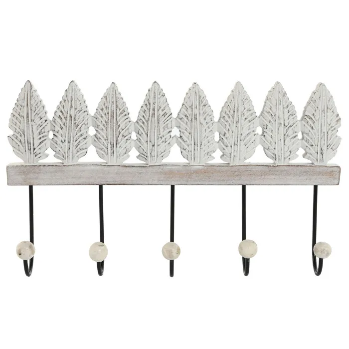 Perchero de Pared Home ESPRIT Blanco Negro Metal Madera de mango Hoja 41 x 6,5 x 16,5 cm