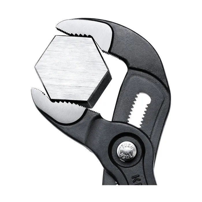 Los Alicates Knipex Cobra 8701300 Ajustables son la herramienta definitiva para cualquier entusiasta del bricolaje o profesional. Ya sea que necesites arreglar una tubería con fugas o apretar un tornillo resistente, los Knipex Cobra pueden manejarlo todo. Con su diseño ajustable, puedes ajustar rápida y fácilmente el agarre para adaptarse a cualquier objeto, lo que lo convierte en una de las herramientas más versátiles en tu caja de herramientas.