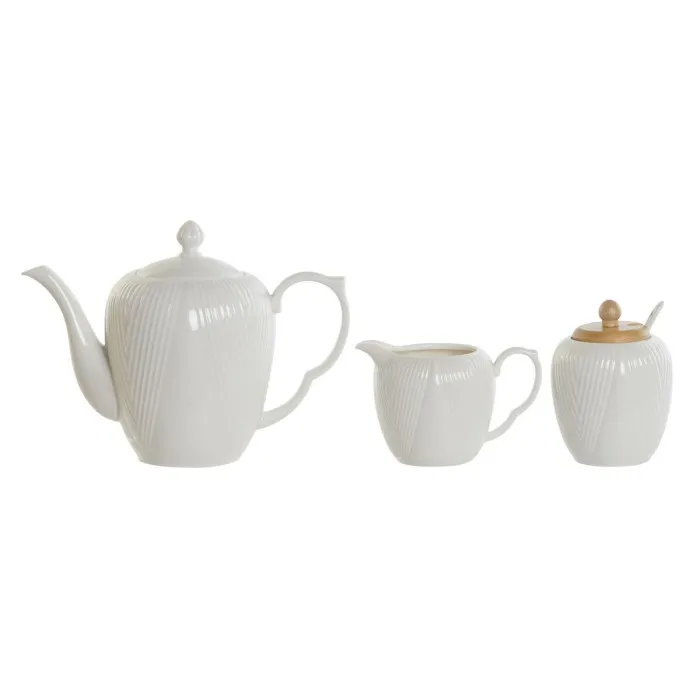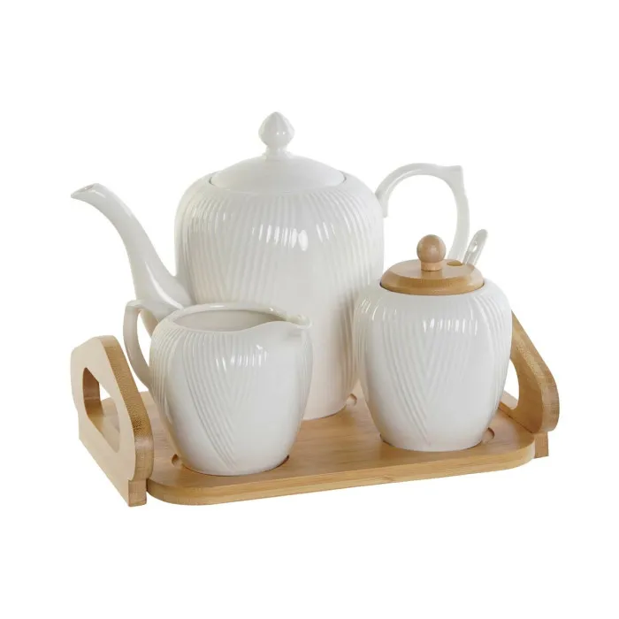 La tetera DKD Home Decor de porcelana blanca y bambú natural es la adición perfecta a cualquier cocina moderna. Este juego de tetera incluye una jarra de leche, un azucarero y una bandeja, lo que lo hace ideal para organizar fiestas de té o disfrutar de una taza tú solo.