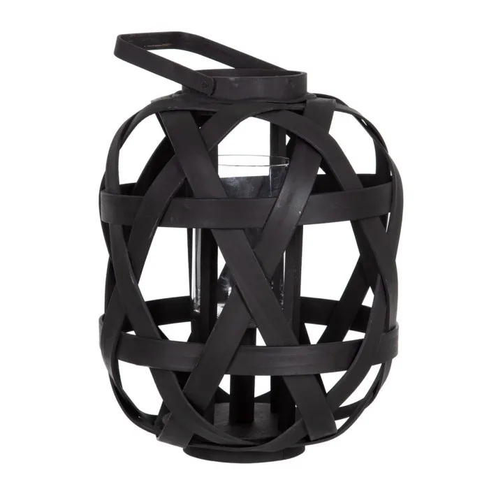 Farol 29 x 29 x 37 cm Portavelas Negro Bambú