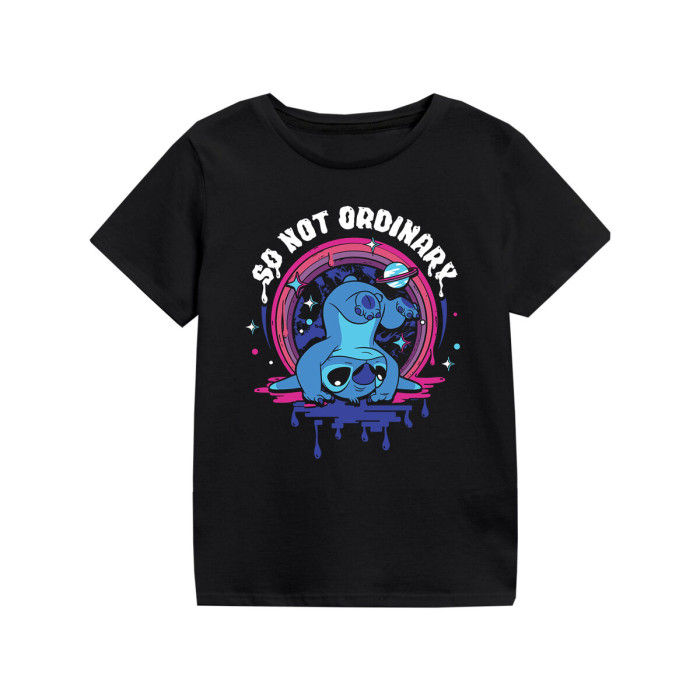 Además, abrazar productos temáticos de Stitch significa que tu hijo no solo está usando una camiseta; también está adoptando una parte de la cultura pop que fomenta la creatividad y la imaginación. Esta camiseta es más que solo ropa; es una manera para que los niños se conecten con sus personajes e historias favoritas, fomentando un sentido de individualidad. La Camiseta de Manga Corta para Niños Stitch No Tan Ordinaria Negra es perfecta para regalar a un niño que celebra un cumpleaños o cualquier ocasión especial, y seguramente le sacará una sonrisa. Con su diseño único, calidad excepcional y estilo atemporal, esta camiseta es una excelente adición al guardarropa de cualquier niño, seguramente se convertirá en un favorito rápidamente.