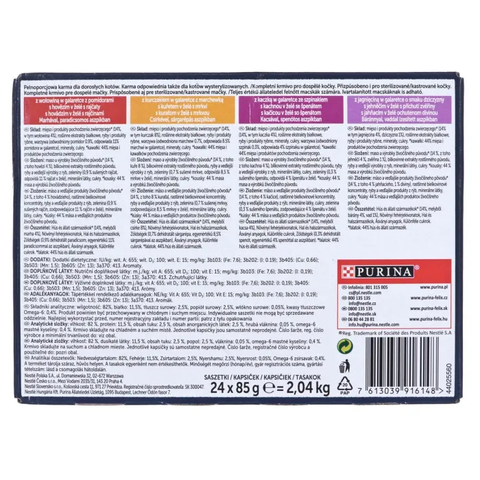 Ya sea que tu gato sea un comedor exigente o simplemente necesite un poco de nutrición adicional, la Comida para gatos Purina Pollo, Vitello, Cordero, Pato 24 x 85 g es una excelente elección. Con su delicioso sabor, ingredientes de calidad y nutrientes esenciales, esta comida para gatos seguramente mantendrá a tu gato feliz, saludable y lleno de energía.