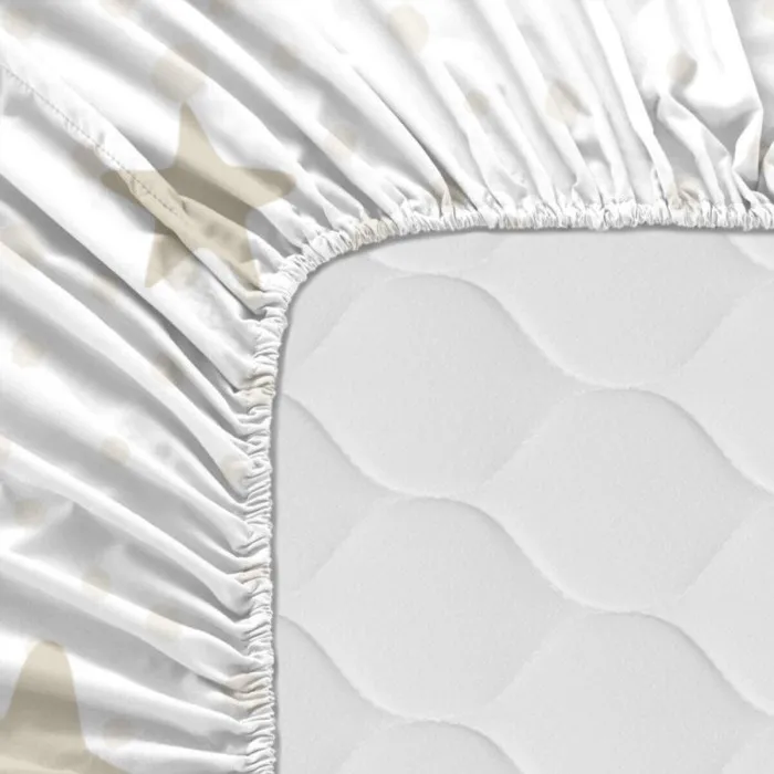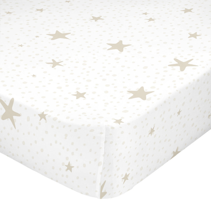 Sábana Bajera HappyFriday BASIC KIDS Blanco Beige 70 x 140 x 14 cm Estrellas