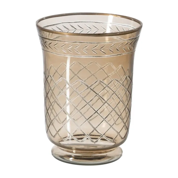 Aporta calidez y elegancia a tu hogar con nuestro Portavelas de Cristal Marrón 18 x 18 x 23 cm. Con su único color marrón y su intrincado diseño en cristal, este portavelas añade un toque de sofisticación a cualquier habitación. Es perfecto para crear una atmósfera acogedora e íntima en ocasiones especiales o para añadir un toque de lujo a tu rutina diaria.