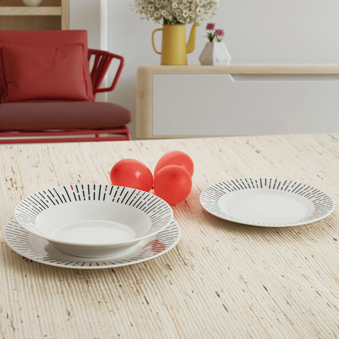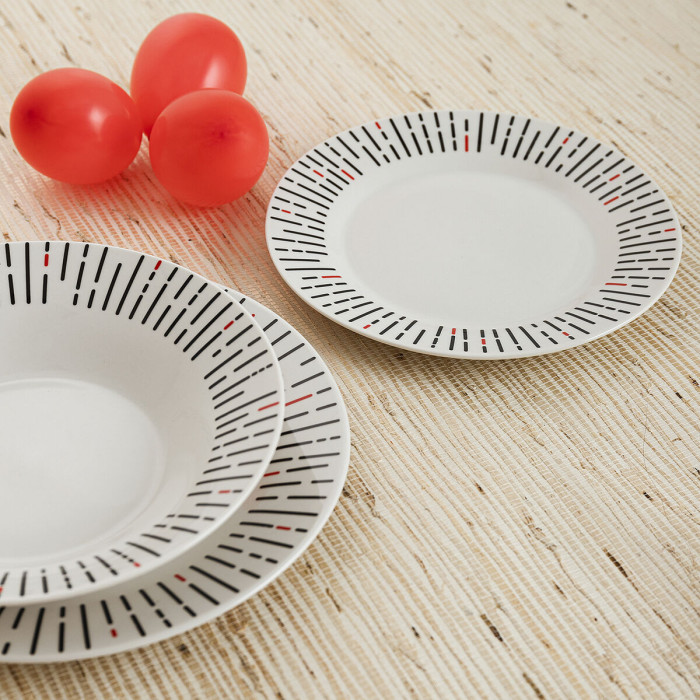 Plato de Postre x 6 (Ã 19 cm), Plato Hondo x 6 (Ã 20 cm), Plato Llano x 6 (Ã 23 cm)