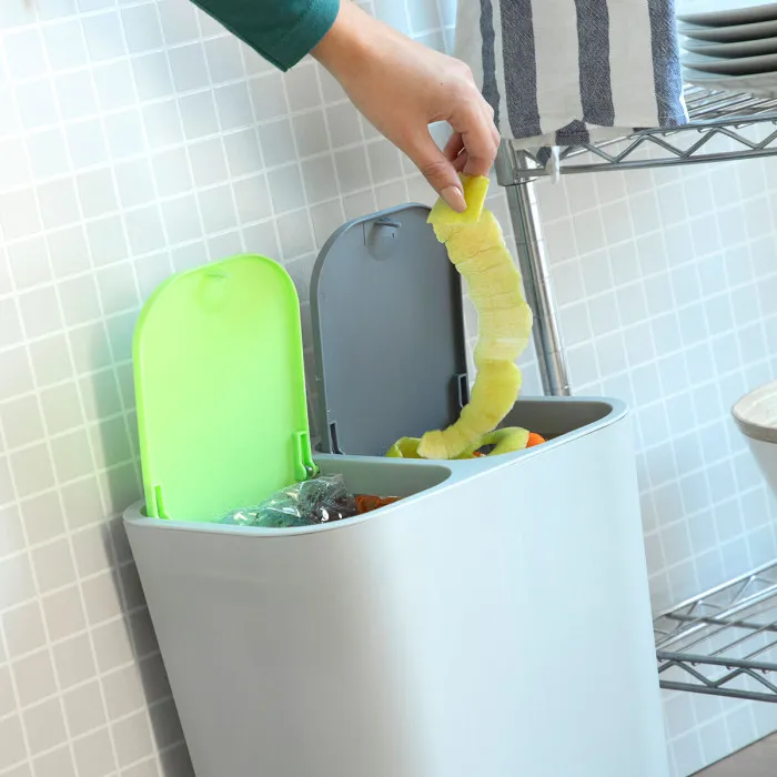 Una papelera de reciclaje doble que permite separar los residuos (orgánicos, plásticos, etc.) para facilitar su posterior reciclado, contribuyendo al consumo responsable y a la protección del medio ambiente. Dispone de 2 compartimentos con una capacidad de 7,5 L cada uno, aunque el separador es extraíble y también puede utilizarse como papelera de un solo compartimento con una capacidad total de 15 L. Por su diseño moderno de bordes redondeados y tacto suave, resulta muy versátil y puede integrarse bien en diversos espacios (cocina, baño, terraza, oficina, etc.). Este cubo de basura para reciclaje es muy cómodo y fácil de usar gracias a sus 2 tapas abatibles con pulsador de apertura automática (apertura lenta tipo push). Cuenta también con un accesorio para facilitar la colocación y sujeción de las bolsas. Además, es ligero, resistente y desmontable, lo que permite su limpieza con mayor facilidad.