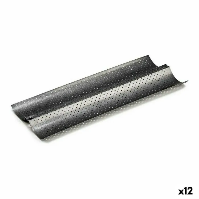Molde para Baguettes Gris oscuro Metal Acero al carbono 16 x 2,5 x 38 cm Pan (12 Unidades)