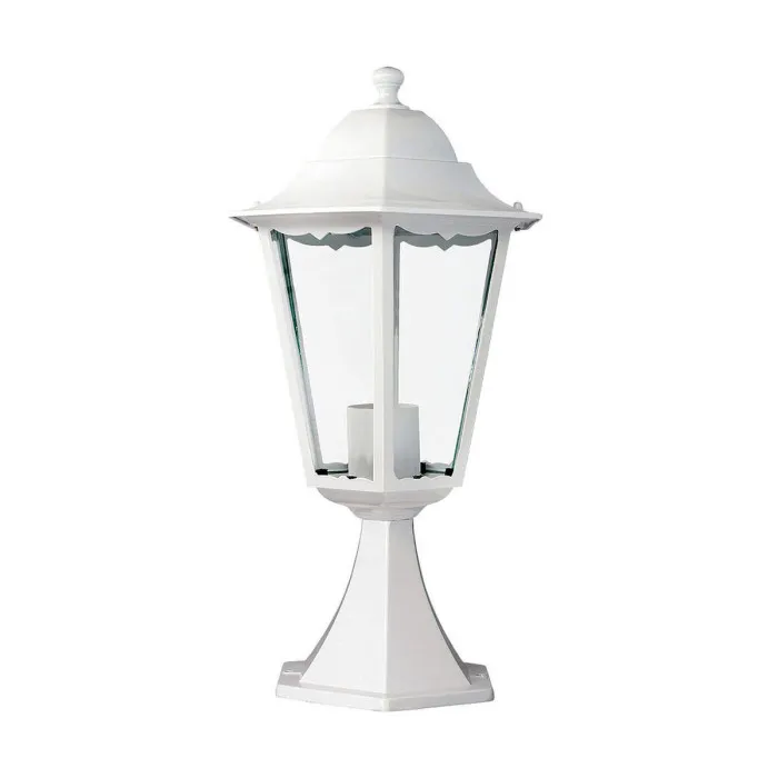 Construida con aluminio, cristal, metal y hierro, esta linterna es capaz de resistir los elementos y permanecer impasible al paso del tiempo. Su clasificación IP44 significa que es resistente al agua y al polvo, lo que la hace perfecta para uso tanto interior como exterior. El ensamblaje del pedestal facilita su instalación y la tapa se ajusta a una bombilla E27, aunque la bombilla no está incluida.
