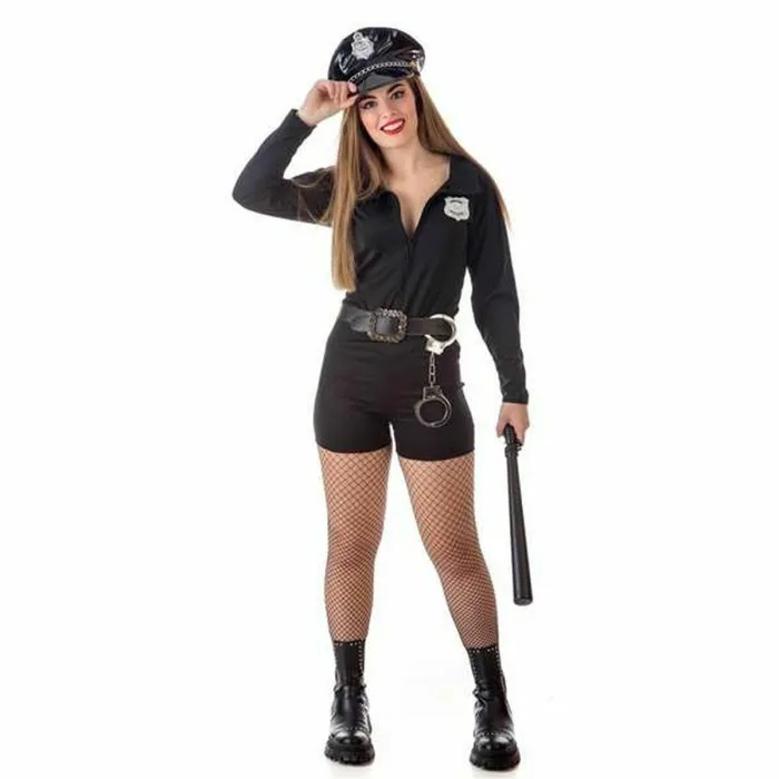 El conjunto de cuatro piezas incluye un gorro de policía, cinturón, pantalones y camisa, todos diseñados para ajustarse y realzar tu figura. La parte superior es una camisa abotonada que se ajusta cómodamente al pecho y la cintura, con un par de pantalones negros ceñidos que alargan tus piernas y crean una silueta elegante y estilizada. El gorro y el cinturón completan el atuendo, añadiendo los toques finales para crear un disfraz de oficial de policía auténtico y sin costuras.