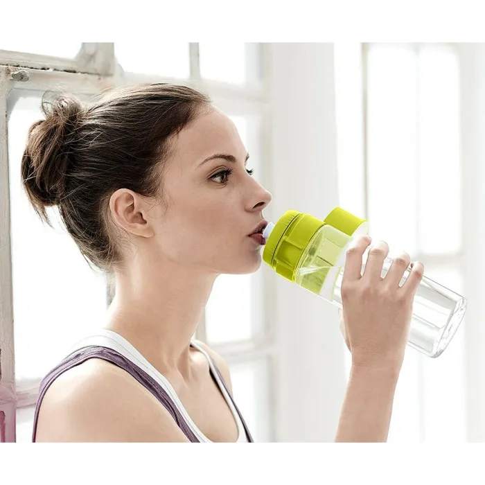 Con una capacidad de 600 ml, esta botella es lo suficientemente grande para contener una buena cantidad de líquido, pero lo suficientemente pequeña para llevarla contigo. El color verde no solo la hace estilosa, sino que también es fácil de identificar entre otros artículos en tu bolso. La botella está hecha de plástico de alta calidad, que es tanto duradero como ligero, lo que la hace fácil de transportar a cualquier lugar.