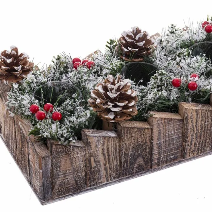 Portavelas Navideño Blanco Rojo Verde Natural Madera Cristal Plástico 30 x 15 cm
