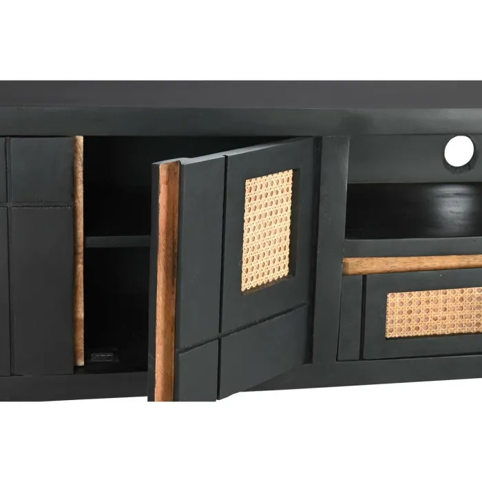 Mueble de TV DKD Home Decor Negro Ratán Madera de mango (145,5 x 40,5 x 60 cm)