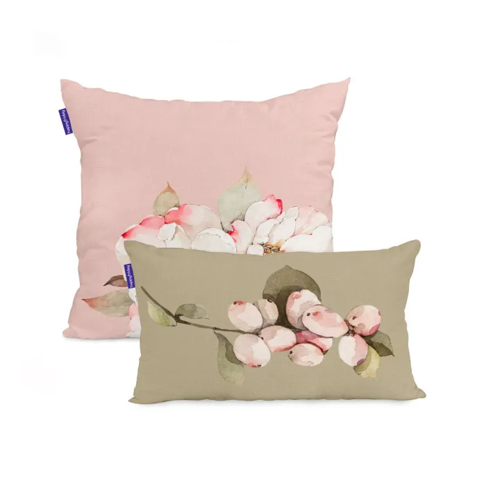 Juego de fundas de cojín HappyFriday White peonies Multicolor 2 Piezas