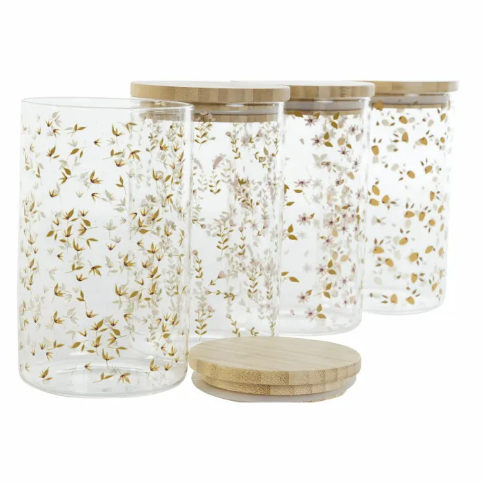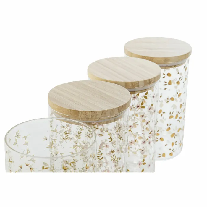 Bote DKD Home Decor Bambú Vidrio de Borosilicato Shabby Chic 1 L 10 x 10 x 17 cm (4 Unidades)