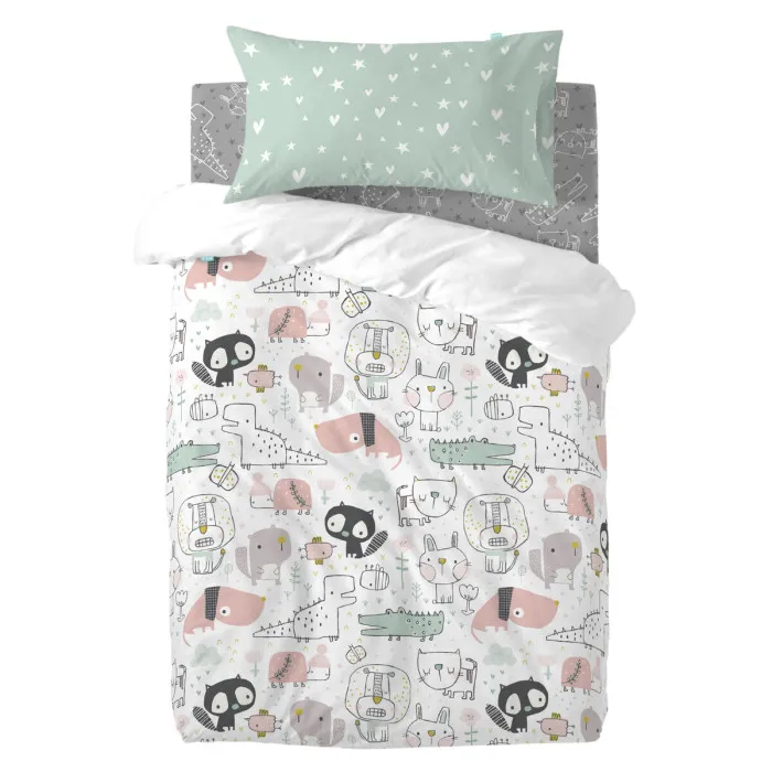 Juego de funda nórdica HappyFriday Moshi Moshi Best Buddies Multicolor Cuna de Bebé 2 Piezas