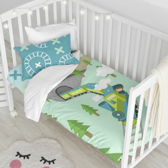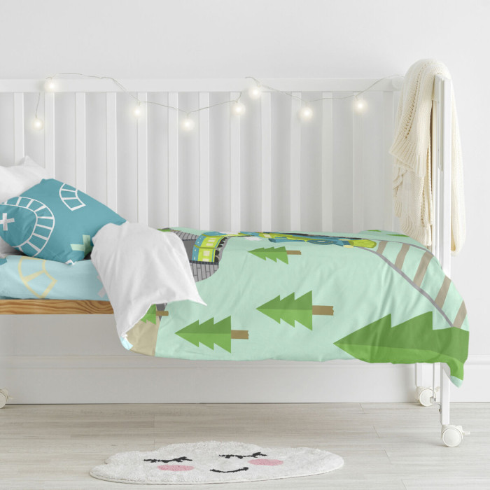 Juego de funda nórdica HappyFriday Happynois Train Multicolor Cuna de Bebé 2 Piezas