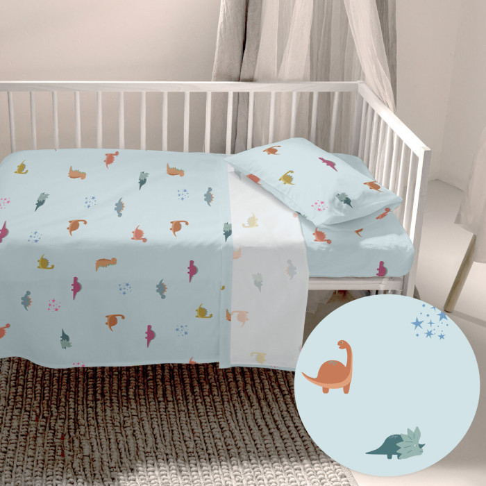 Juego de Sábanas HappyFriday HF Mini Dinosaur Multicolor Cuna de Bebé 2 Piezas